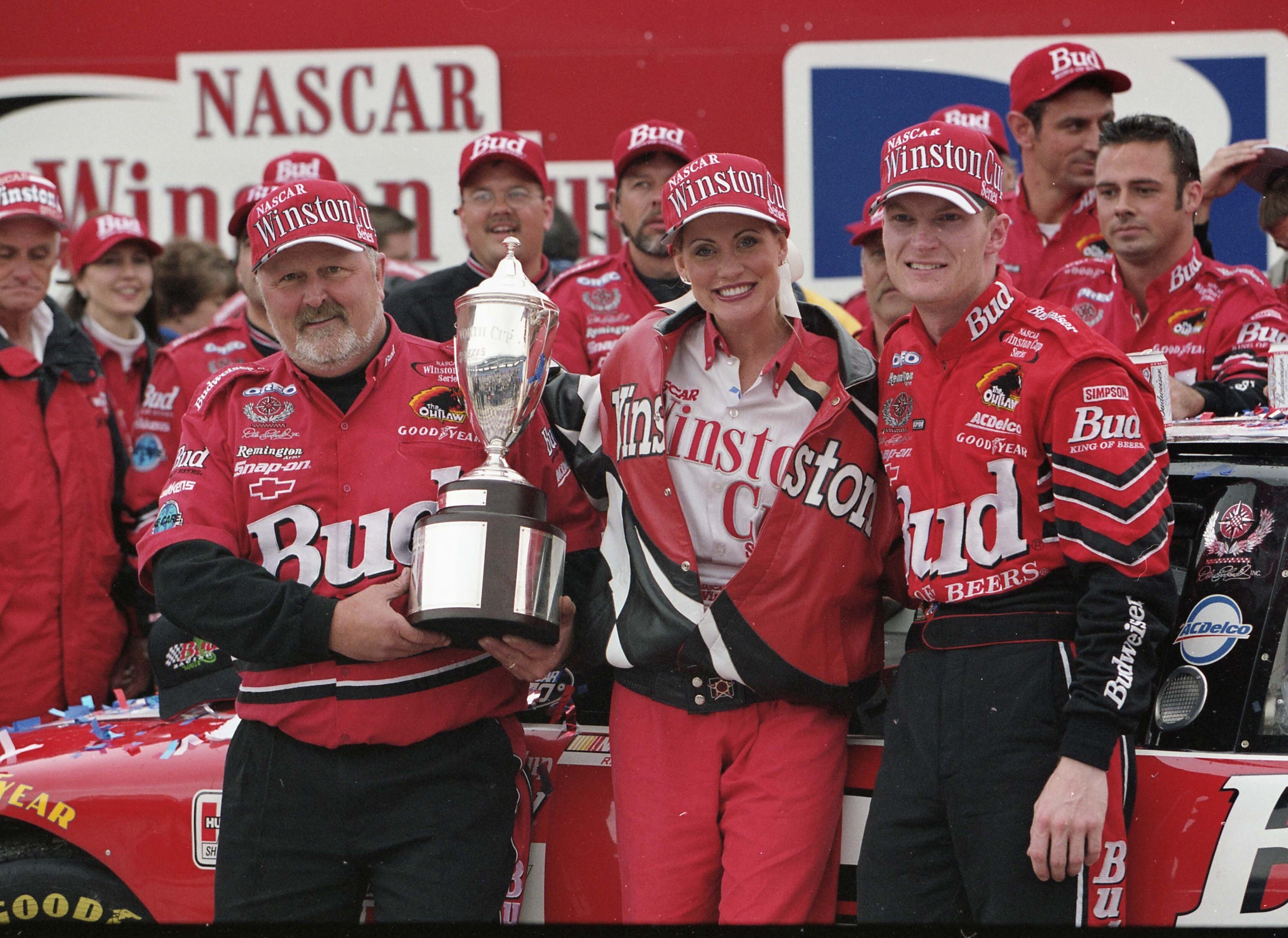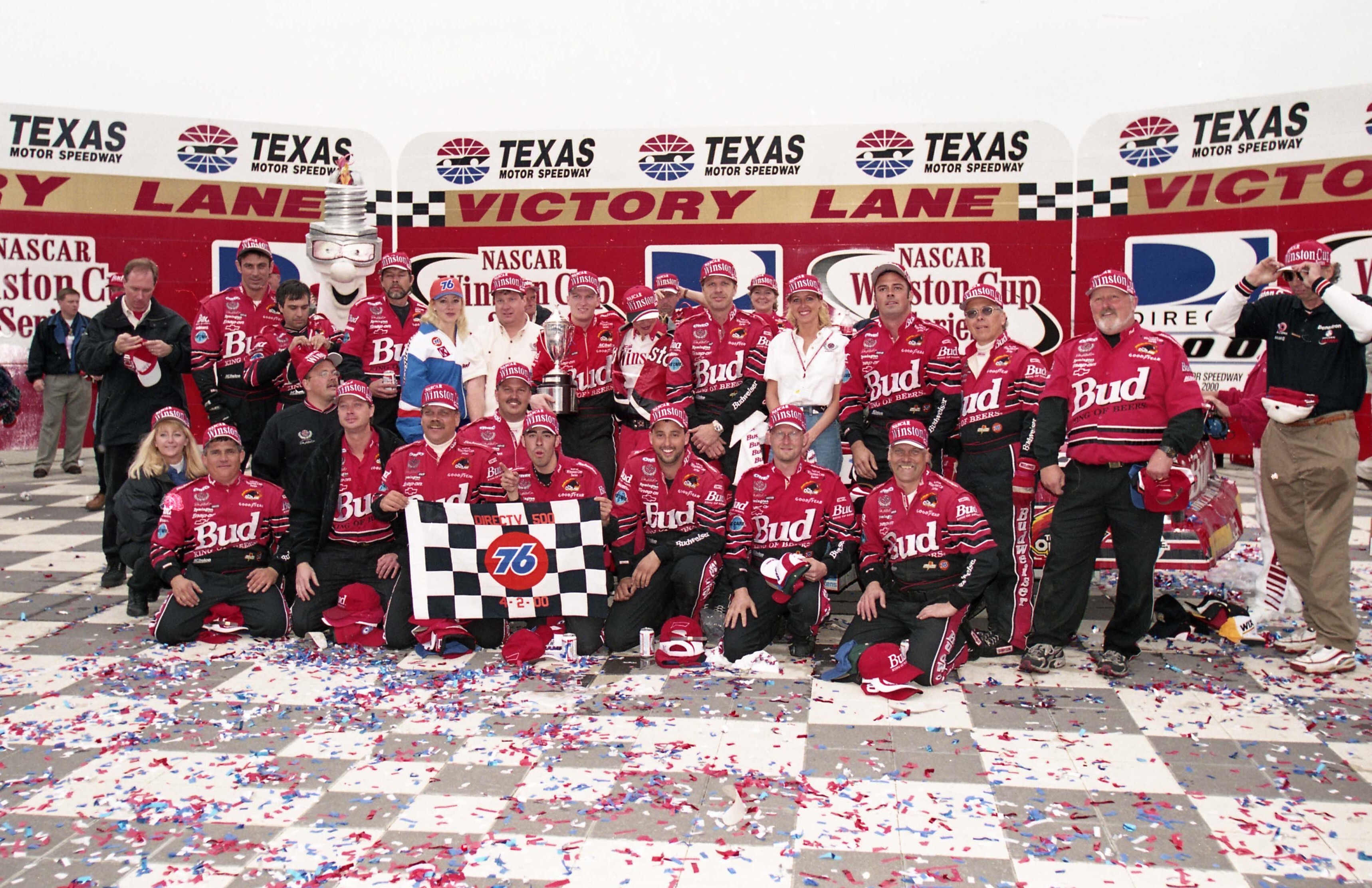 The crew of the No. 8 Dale Earnhardt Inc. Chevrolet joined the party after Dale Earnhardt Jr. won the 2000 DirecTV 500 at Texas Motor Speedway. NASCAR Hall of Fame Collection, gift of R.J. Reynolds Tobacco Company